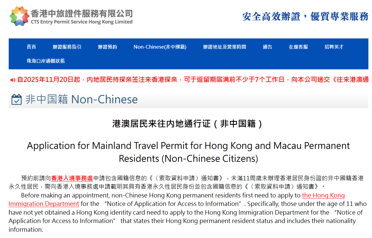 - 港澳居民来往内地通行证(非中国籍)Application for Mainland Travel Permit for Hong Kong and Macau Permanent Residents (Non-Chinese Citizens)